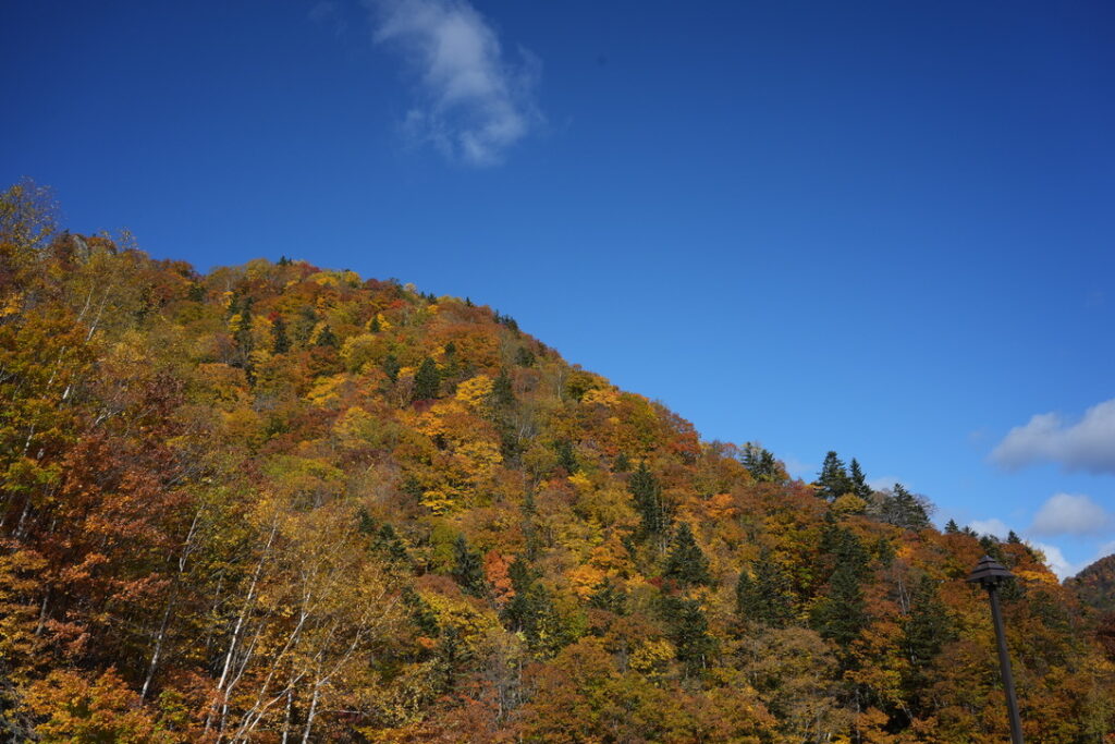 2025年の10月21日ですが支笏湖までの道はとても紅葉が綺麗なのですが、山を少し登ると紅葉は終わりを迎えていました。
