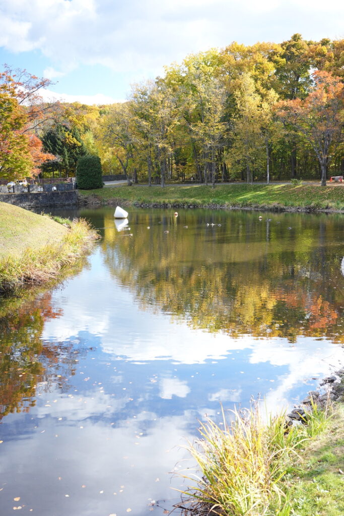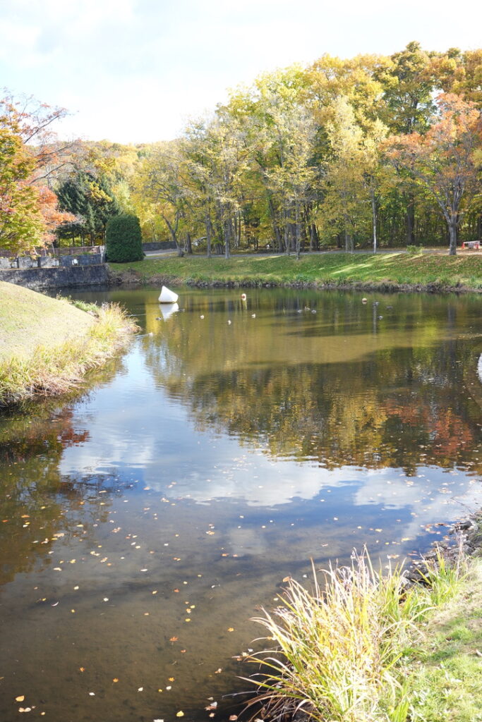 続いて芸術の森美術館に来ました。ここの紅葉も綺麗なんじゃないかと思い来てみましたが、時間がなかったので池の周りだけ撮影。野外美術館にも行けば良かったかも。